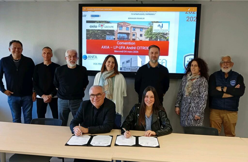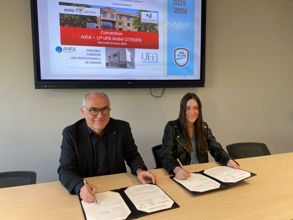 Le mercredi 4 mars 2026, l’UFA ANDRE CITROEN MARLY et le LP André Citroen MARLY ont signé une convention de partenariat avec Axia Intérim Hagondange. L’objectif est d’accompagner les jeunes vers l’employabilité et renforcer les passerelles entre formation et monde professionnel pour les apprentis et les élèves qui terminent leur formation sans être embauchés à cette issue.